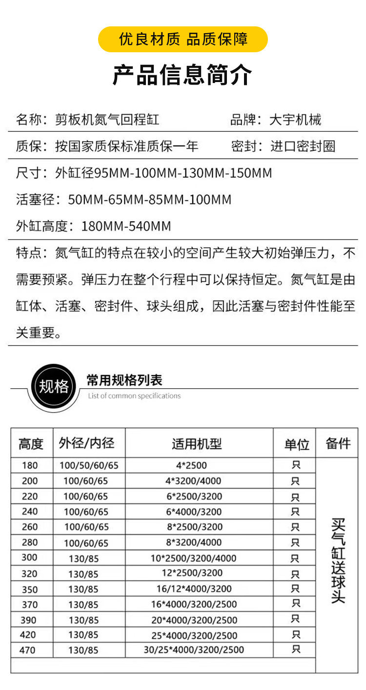 剪板機氮氣回程缸